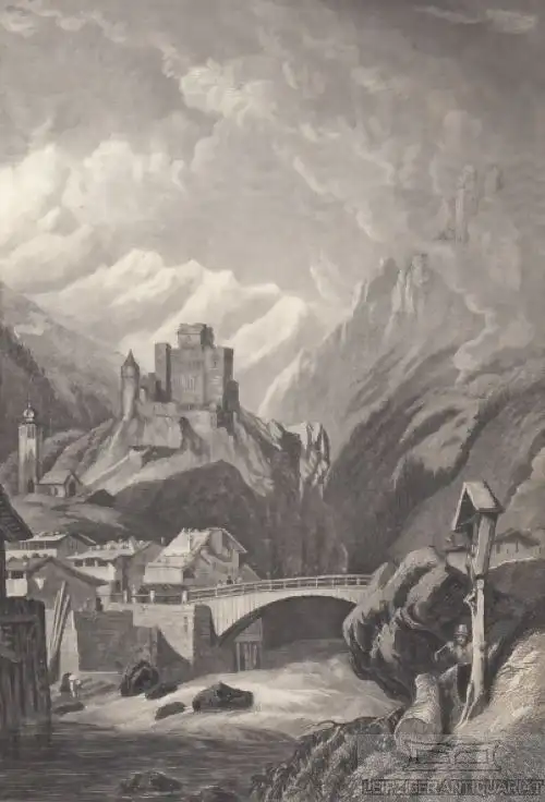 Burg Landeck in Tyrol. aus Meyers Universum, Stahlstich. Kunstgrafik, 1850