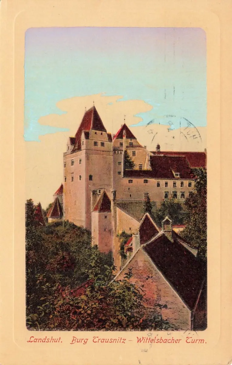 Burg Trausnitz - Wittelsbacher Turm in Landshut Bayern Postkarte AK 1913
