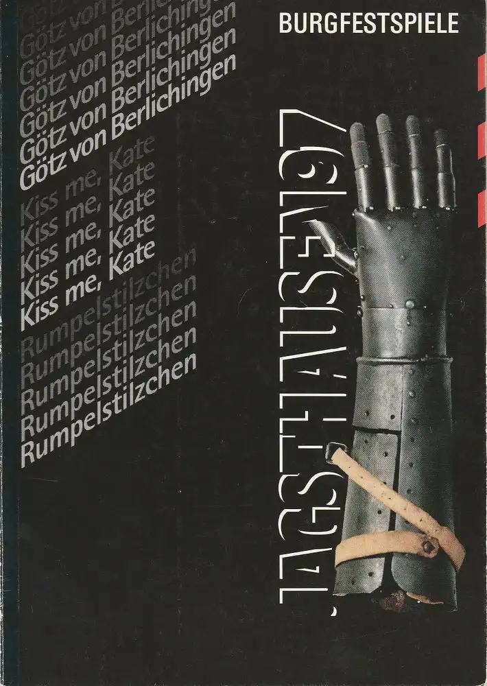 Programm: GÖTZ VON BERLICHINGEN von Johann Wolfgang von Goethe. Inszenierung: Alois-Michael Heigl.KISS ME KATE von Samuel und Bella Spewack. Inszenierung und Choreographie: Helga Wolf. Musikalische Leitung: Jean Hoffmann. RUMPELSTILZCHEN von Nina Roll nach dem Märchen der Gebrüder Grimm. Inszenierung: Andreas Herrmann. - Theaterprogramm, Opernprogramm, Ballettprogramm, Musicalprogramm, Konzertprogramm, Theatermemorabilia, Programmhefte Sammlung, deutsche Theatergeschichte.