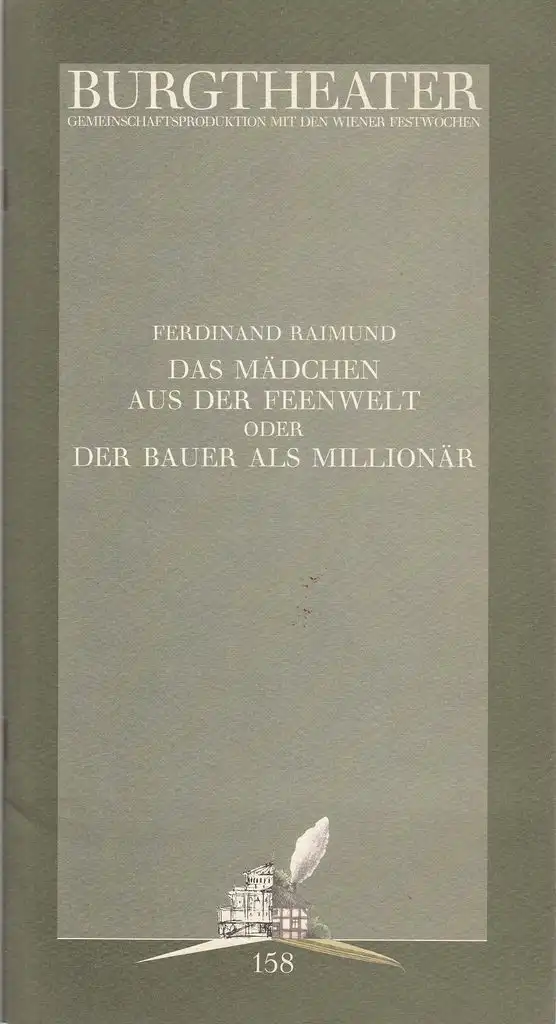 oder DER BAUER ALS MILLIONÄR. Romantisches Original-Zaubermärchen mit Gesang. Musik: Kapellmeister Joseph Drechsler. Inszenierung: Ursel Herrmann, Karl-Ernst Herrmann. Bühne und Kostüme: Karl-Ernst Herrmann. Dirigent im Theater an der Wien: Tassilo Jelde. Mitwirkende: Brigitta Furgler, Johann Adam Oest, Urs Hefti, Franz J. Csencsits, Martin Schwab, Nicholas Ofczarek, Birgit Lehner, Regina Stötzel, Alexander Strömer, Ulli Fessl, Sabine Kogler, Otto Schenk, u.a. - Theaterprogramm, Opernprogramm, Ballettprogramm, Musicalprogramm, Konzertprogramm, Theatermemorabilia, Programmhefte Sammlung, deutsche Theatergeschichte.