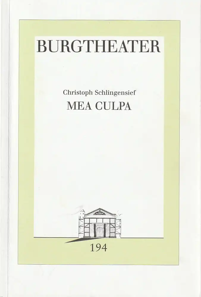 Burgtheater Wien, Klaus Bachler, Carl Hegemann, Henning Nass, Christian Mahlow, Veronika Maurer, Laura Schmidt: Programmheft Uraufführung Christoph Schlingensief MEA CULPA 20. März 2009 Spielzeit 2008 / 2009 Heft 194.