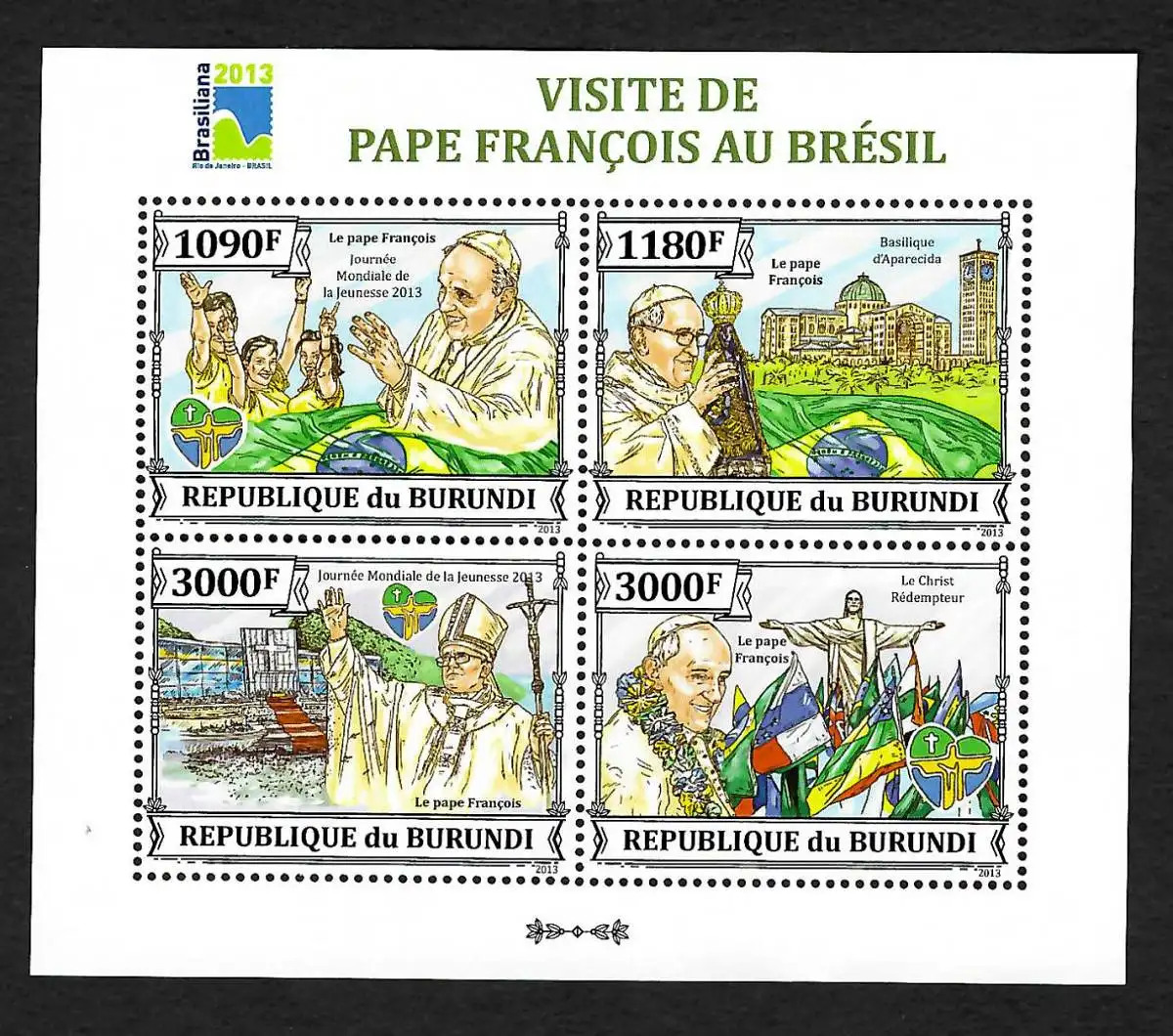 Burundi 2013: Visite de Pape Francois au Brésil, Rio 2013, Block mnh