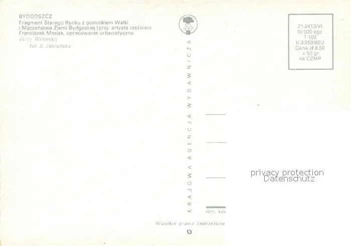 Bydgoszcz_Pommern Fragment Starego Rynku z pomnikiem Walki Franciszek Masiak Bydgoszcz Pommern postalisch nicht gelaufen nach 1965 Erhaltung siehe scans [WerneD78] WernPID7