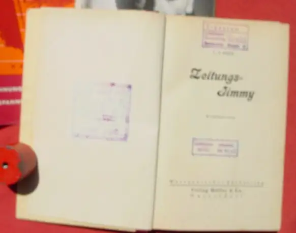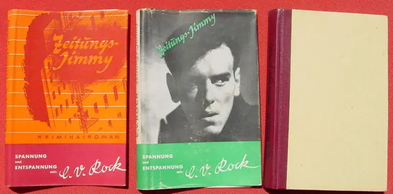 C. V. Rock "Zeitungs-Jimmy". Kriminalroman. 250 Seiten. Halbleinen. Zwei verschiedene Schutzumschlaege. Verlag Moeller, Duesseldorf 1949. Buch innen mit einigen Leihbuecherei-Stempeln. Sonst aber sehr guter Zustand