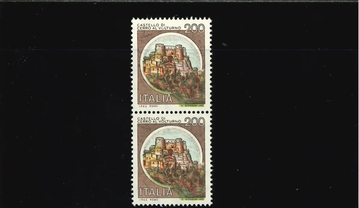 MNH - Vollgummi - CASTELLI 200 L. FARBE GRÜN NACH UNTEN VERTIKALES PAAR VERSCHOBEN Cod. ITAV_0542