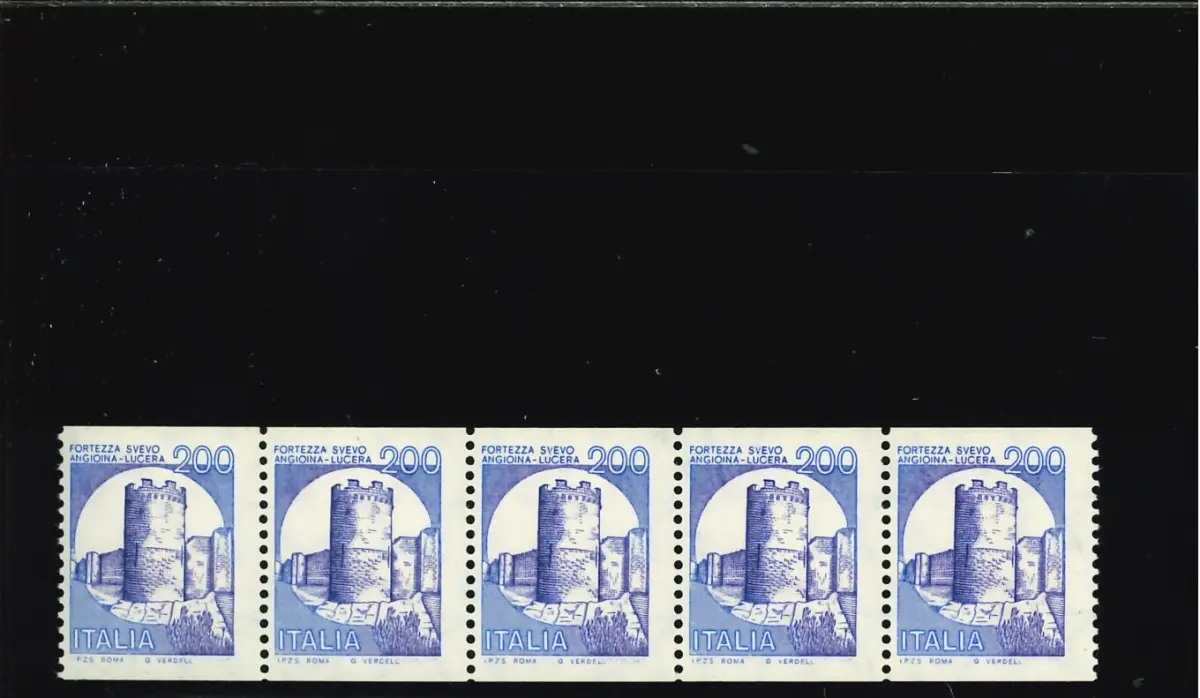 MNH - Vollgummi - CASTELLI MACHINETTE 200 L. FÜNFSTREIFEN TEILSCHRIFT UNTEN Cod. ITAV_0596