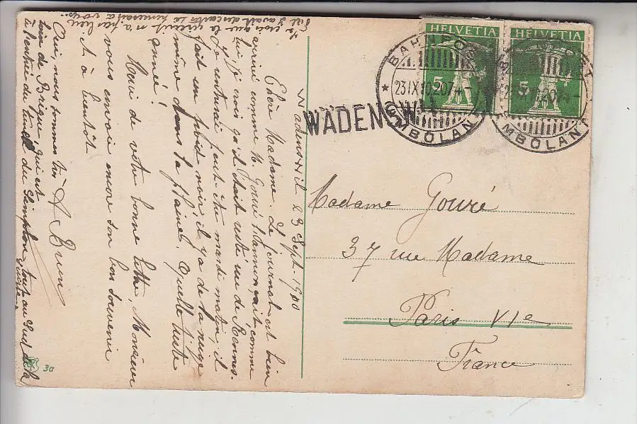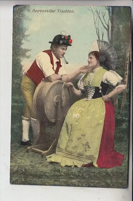 CH 9050 APPENZELL, Tracht, 1920, Bahnpost Ambulant Wädenswil