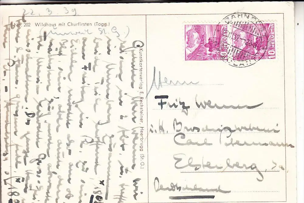 CH 9658 WILDHAUS, Panorama mit Churfirsten, 1939, Bahnpost / Ambulant 26a