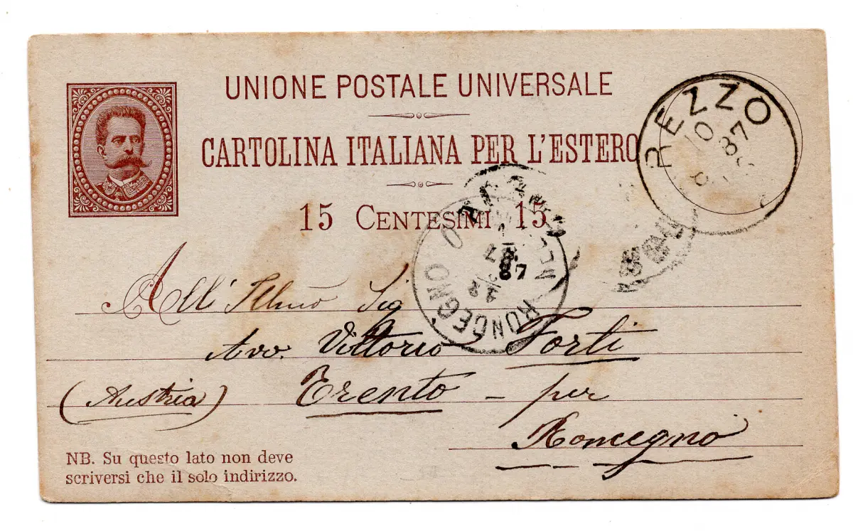 - C.P. Umberto I. Cent. 15 n. C 9 reiste am 10.8.87 nach Roncegno (Österreich) - guter Erhaltungszustand (Vergilbung) Nr. 1025/18