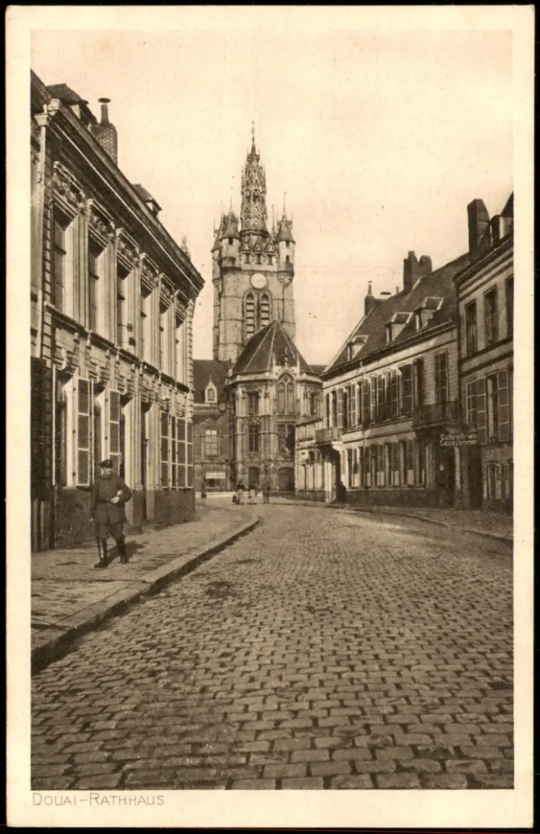 CPA Douai Dowaai Rathaus 1917 1. Weltkrieg Feldpost gelaufen