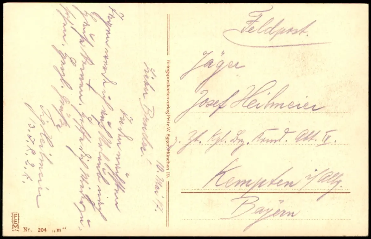 Verlag: Kriegspostkartenverlag Fritz W. Egger, München