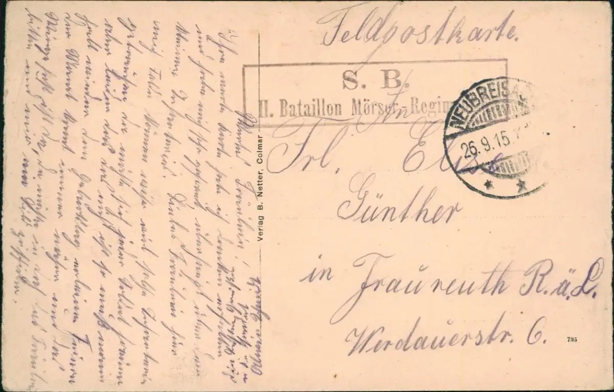 CPA Drei Ähren Trois Epis Stadtpartie 1915 gel. div. Feldpoststempel