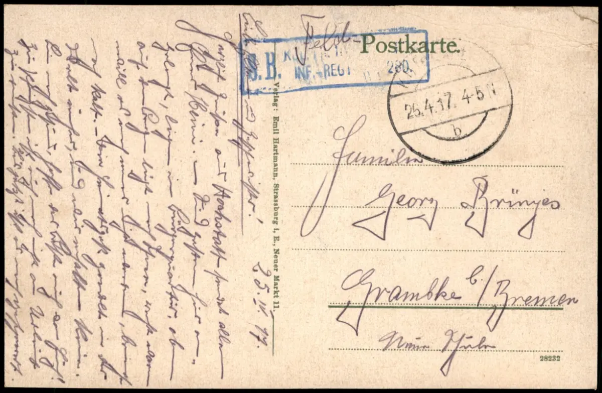 1. Weltkrieg Feldpost gelaufen (S.B. Stempel)