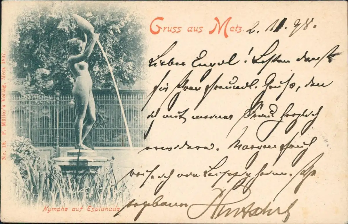 CPA Metz Nymphe auf Esplanade 1898 Ankunftsstempel Riesa