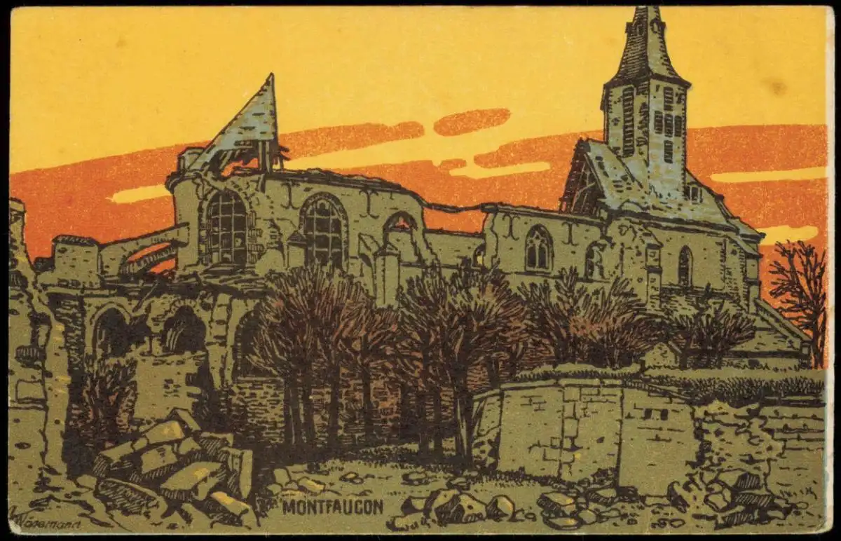 CPA Montfaucon Stadt Künstlerkarte Erster Weltkrieg 1917