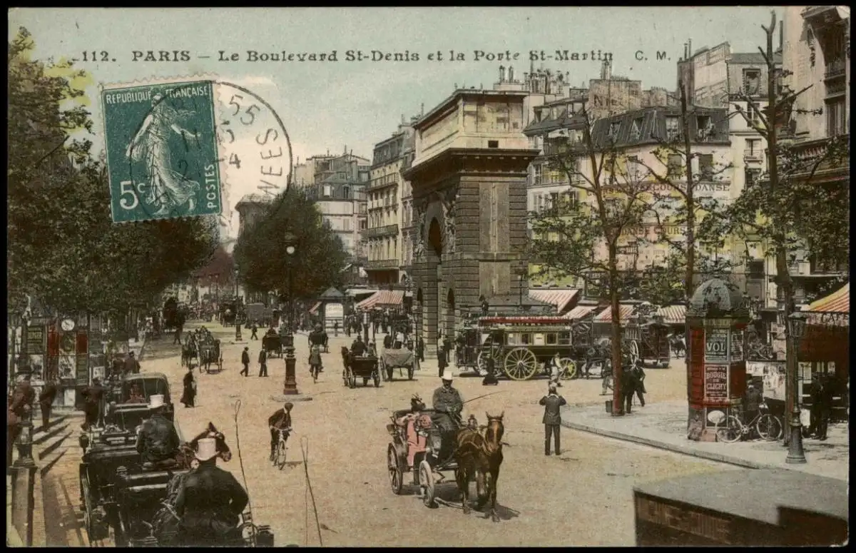 CPA Paris Boulevard St-Denis et la Porte St-Martin 1915 1. WK Feldpost )