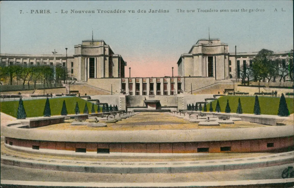 CPA Paris Le Nouveau Trocadéro vu des Jardins 1928