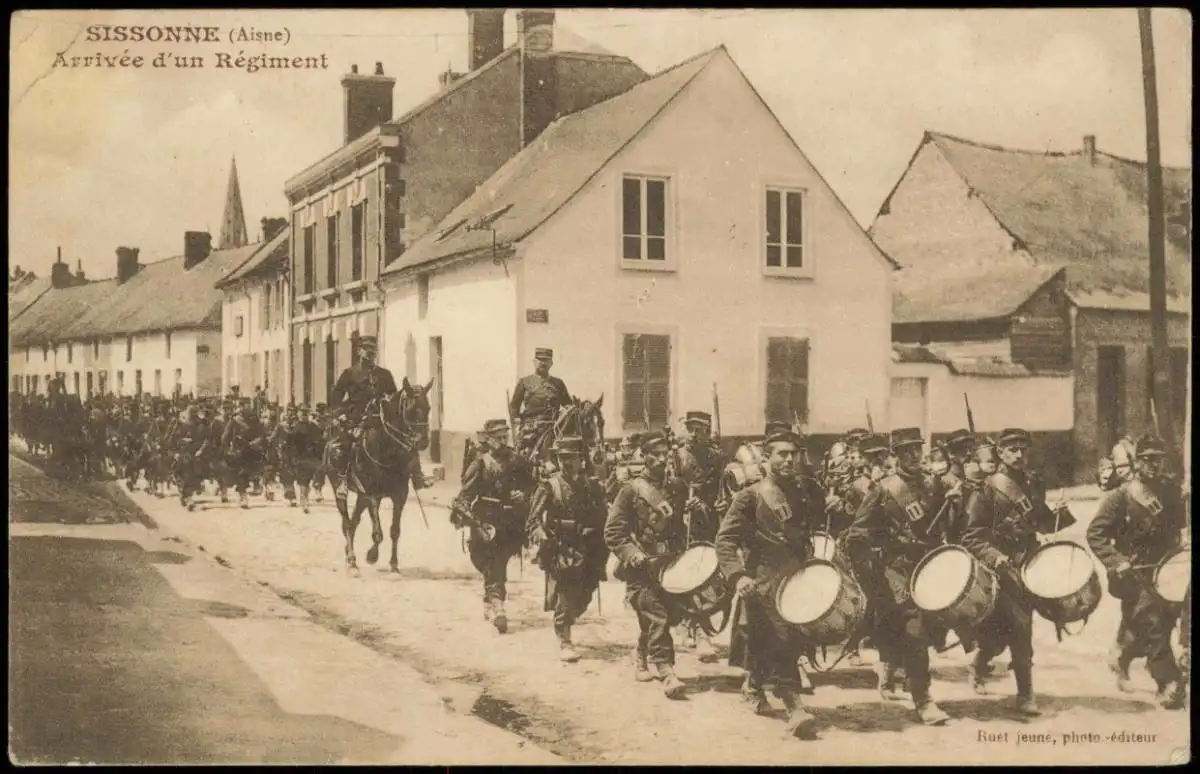CPA Sissonne Arrivée d'un Régiment Soldaten 1915 France Frankreich
