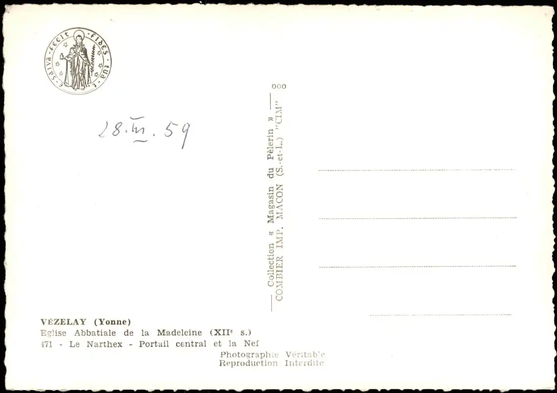 CPA Vézelay Eglise Abbatiale de la Madeleine (XIIe s.) 1959