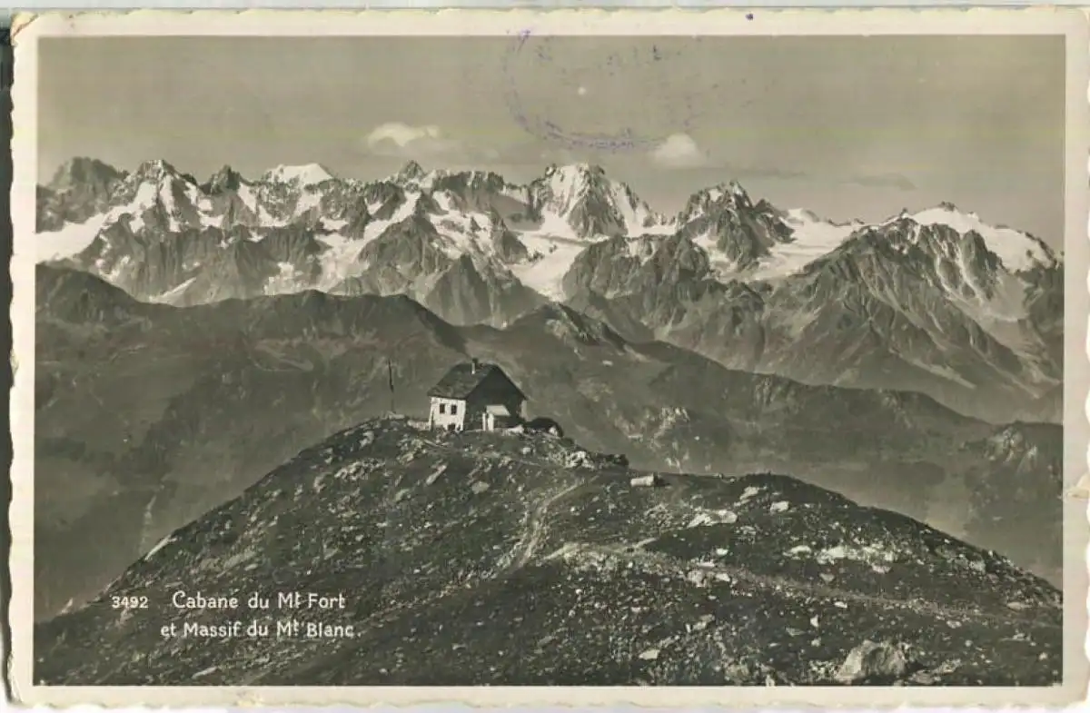 Cabane du Mt. Fort et Massif du Mt. Blanc - Foto-Ansichtskarte - Edition Perrochet et Phototypie Lausanne (E90878) gel. 1939