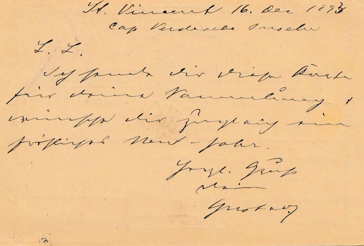 Cabo Verde: 1893: post card St. Vicente to Nottingham