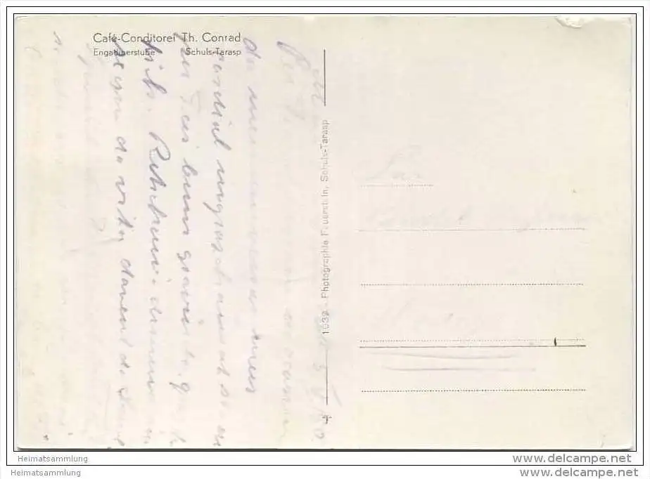 Cafe-Conditorei Th. Conrad - Engadinerstube - Foto-AK Grossformat - Verlag Feuerstein Schuls-Tarasp - Rückseite beschrieben 1950 - Gebrauchsspuren oben links (G28403)