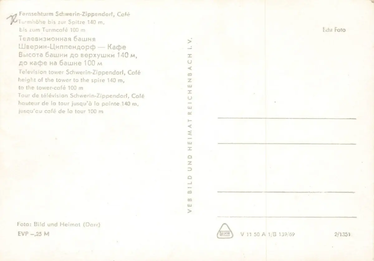 Café im Fernsehturm Schwerin-Zippendorf Mecklenburg-Vorpommern Postkarte AK