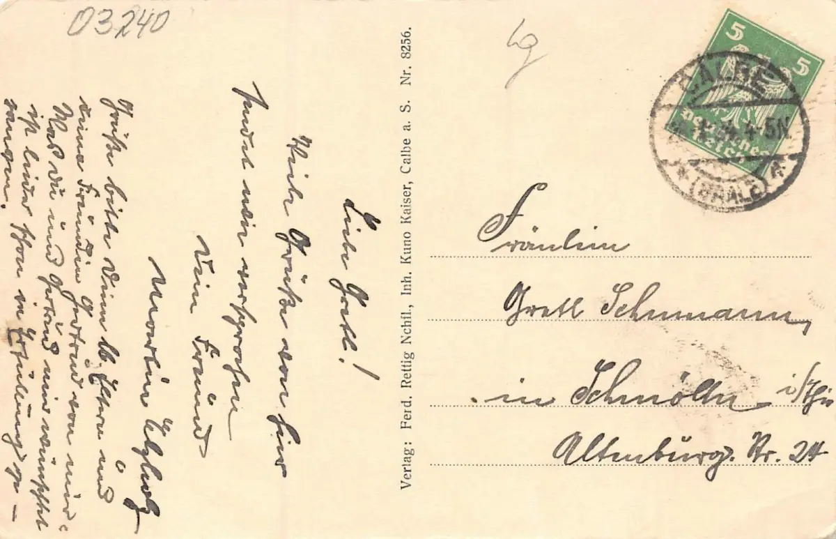 Rückseite: gelaufen 1924 von Calbe (Saale)
