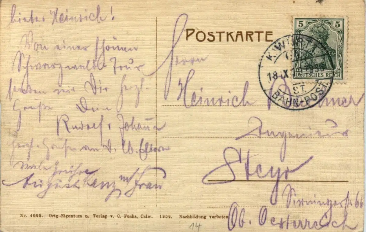 Danke. Alles Bestens. Können Sie mir allenfalls mitteilen, aus welchem Jahr die Postkarte stammt? Besten Dank.