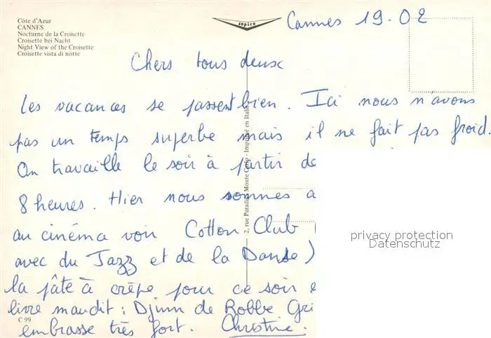 Cannes_Alpes-Maritimes Nocturne de la Croisette Côte d'Azur Cannes Alpes-Maritimes postalisch nicht gelaufen nach 1965 Erhaltung siehe scans [FriedD77] Frierer