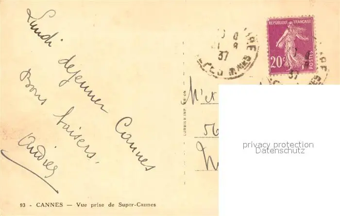 Cannes_Alpes-Maritimes Vue prise de Super Cannes Côte d'Azur Cannes Alpes-Maritimes postalisch gelaufen 1937 Erhaltung siehe scans [FriedD77] Frierer