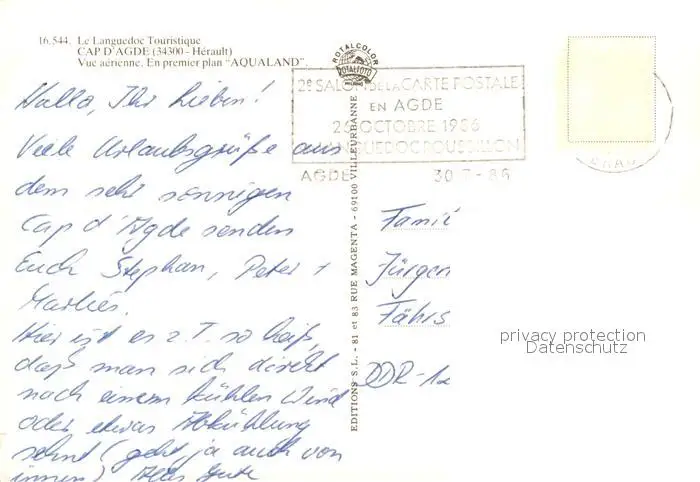 Cap-d_Agde Fliegeraufnahme Cap-d_Agde postalisch gelaufen 1986 Erhaltung siehe scans [LiesaD40] LiesID40