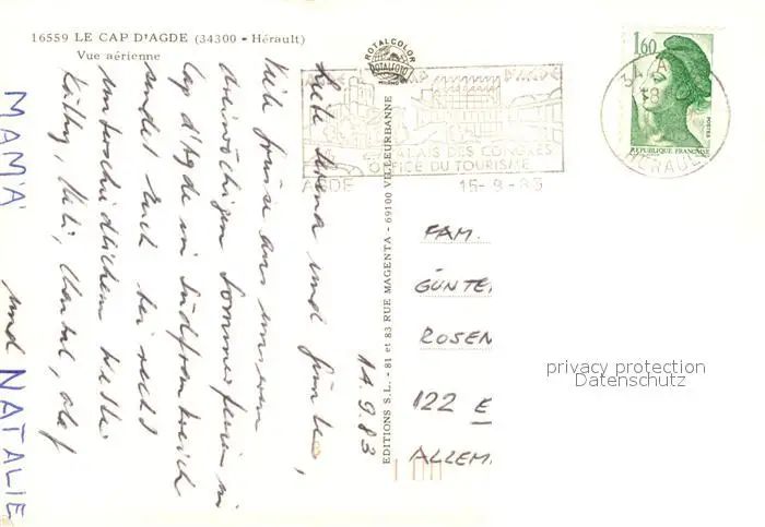 Cap-d_Agde Fliegeraufnahme Port Cap-d_Agde postalisch gelaufen 1983 Erhaltung siehe scans [LiesaD40] LiesID40