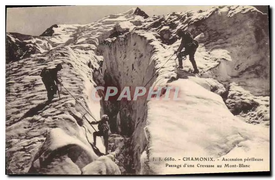 Cartes postales Alpinisme Chamonix Ascension perilleuse Passage d'une crevasse au Mont Blanc