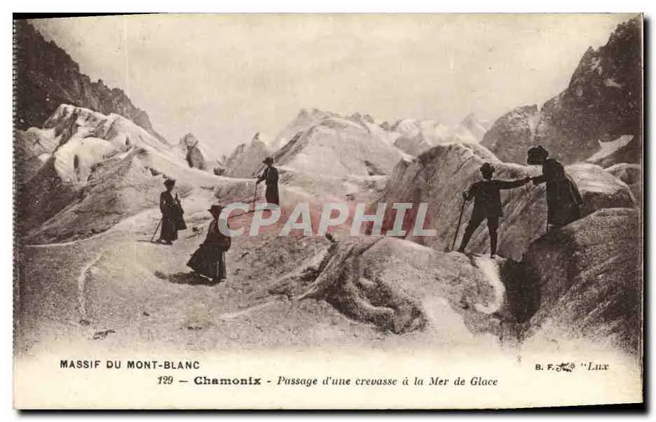 Cartes postales Alpinisme Chamonix Passage d'une crevasse a la mer de glace