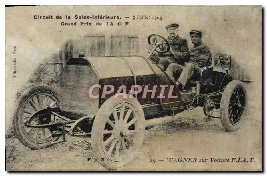 Cartes postales Automobile Circuit de la Seine Inferieure 7 juillet 1908 Grand prix de l'ACF Wagner sur Voitu