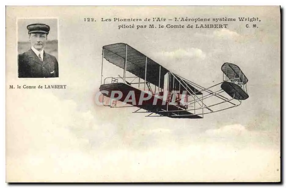 Cartes postales Aviation Avion Aeroplane systeme Wright pilote par M le comte de Lambert