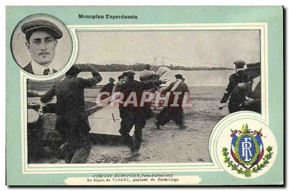 Cartes postales Aviation Avion Monoplan Deperdussin Circuit europeen Juin Juillet 1911 Le depart de Vidart gagna