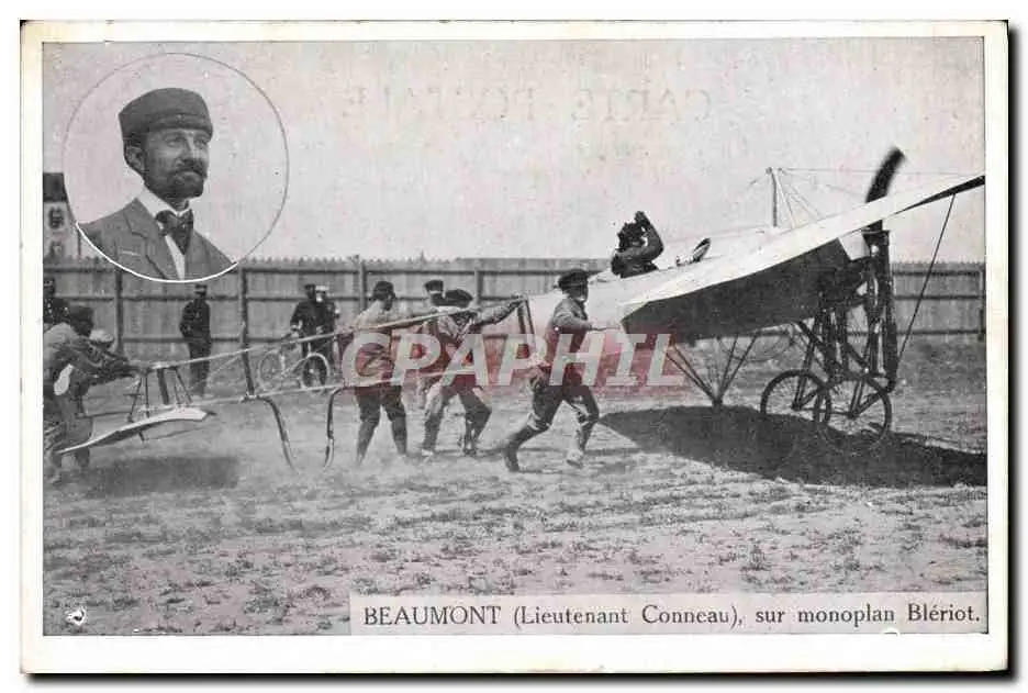Cartes postales Avion Aviation Beaumont Lieutenant Conneau sur monoplan Bleriot