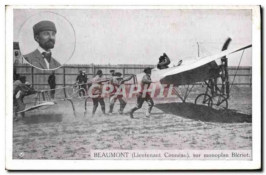 Cartes postales Avion Aviation Beaumont Lieutenant Conneau sur monoplan Bleriot