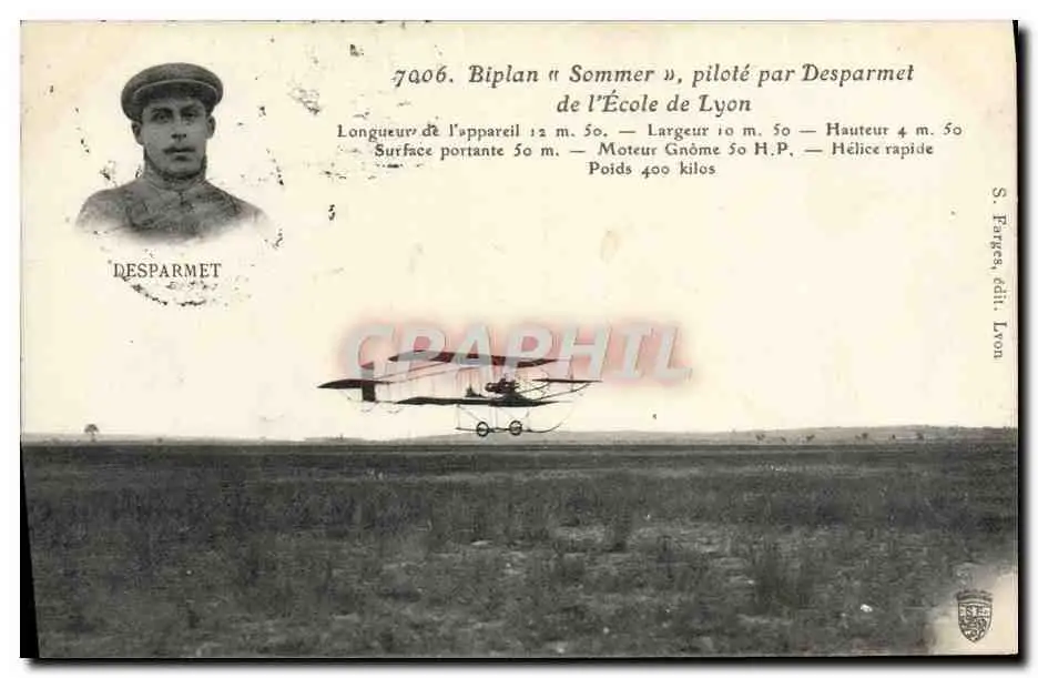 Cartes postales Avion Aviation Biplan Sommer pilote par Desparmet de l'ecole de Lyon