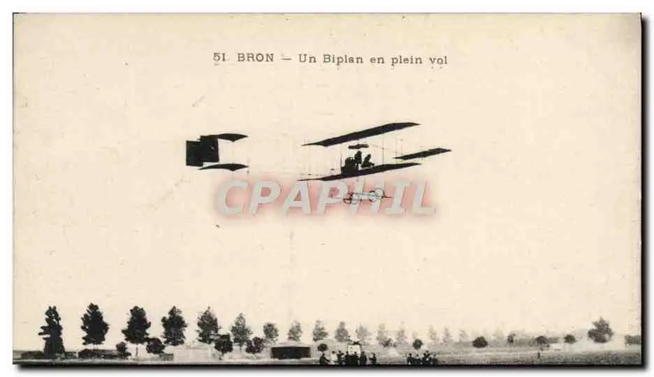 Cartes postales Avion Aviation Bron Un biplan en plein vol