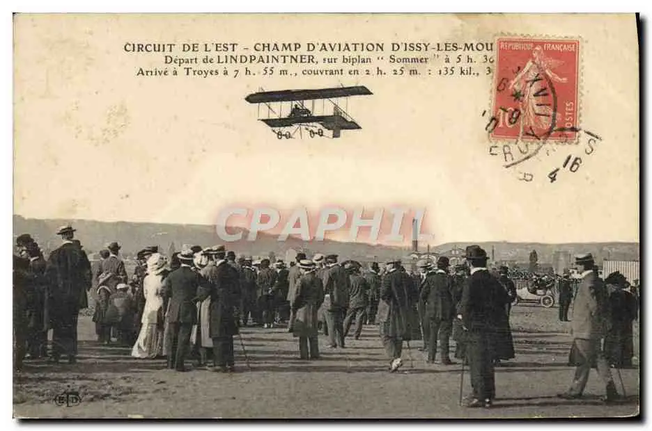 Cartes postales Avion Aviation Circuit de l&#39Est Champ d&#39aviation d&#39Issy les Moulineaux Depart de Lindpa