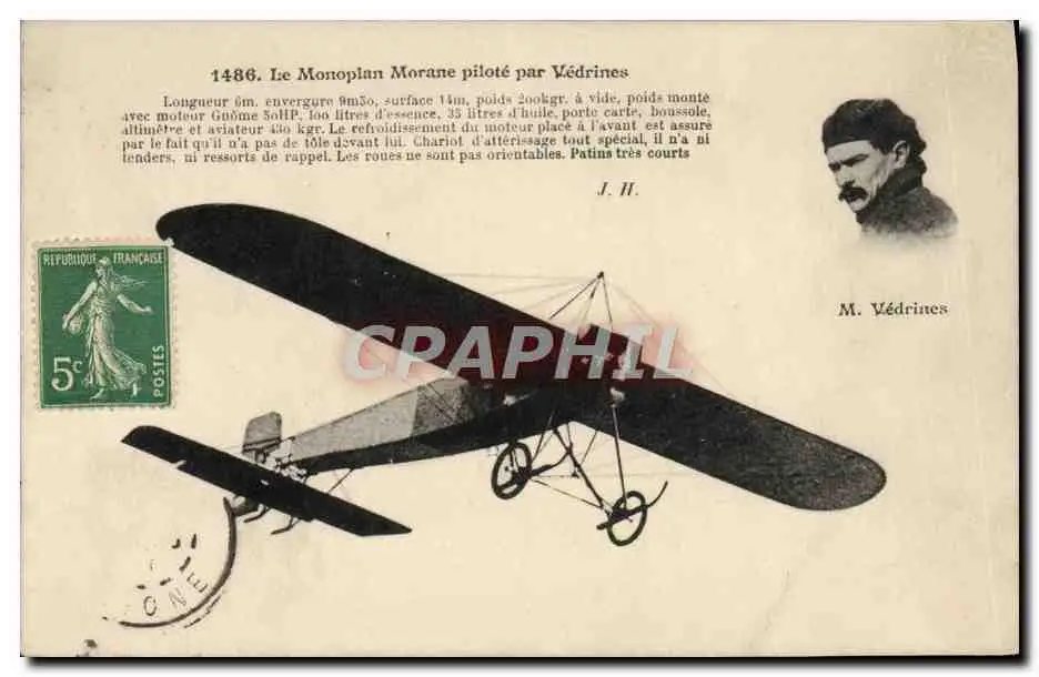 Cartes postales Avion Aviation Le monoplan Morane pilote par Vedrines