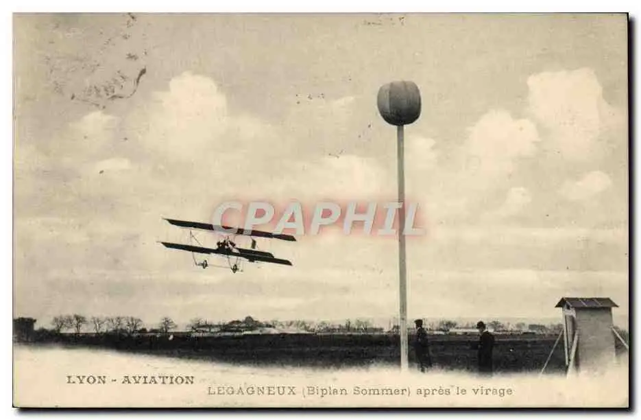 Cartes postales Avion Aviation Lyon Aviation Biplan Sommer apres le virage