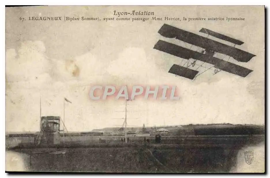 Cartes postales Avion Aviation Lyon Aviation Legagneux Biplan Sommer Mme Henriot Premiere aviatrice lyonnaise