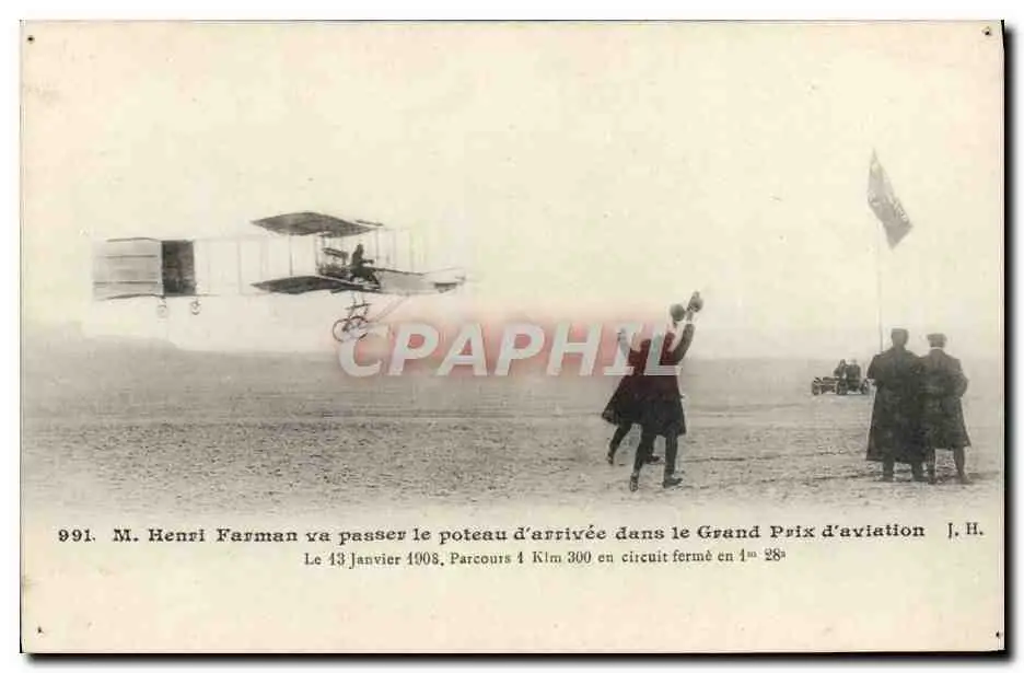 Cartes postales Avion Aviation M Henri Farman va passer le poteau d'arrivee dans le grand prix d'aviation