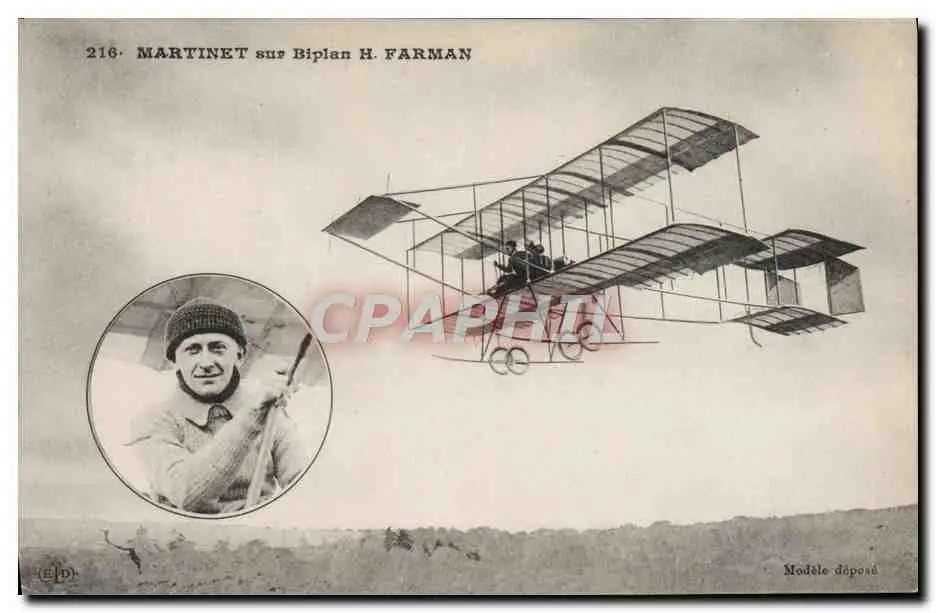 Cartes postales Avion Aviation Martinet sur biplan H Farman