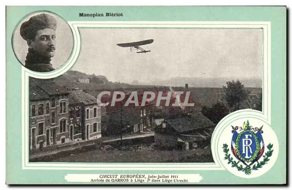 Cartes postales Avion Aviation Monoplan Bleriot Circuit europeen Juin Juillet 1911 Arrivee de Garros a Liege Utr