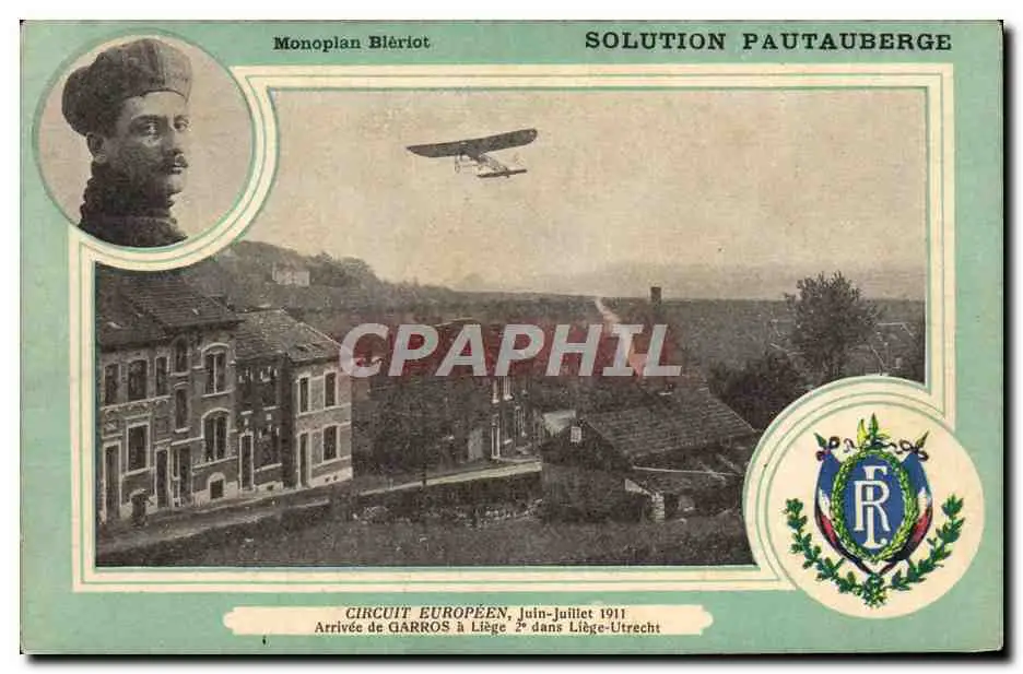 Cartes postales Avion Aviation Monoplan Bleriot Pauteuberge Circuit europeen Juin Juillet 1911 Arrivee de Garros